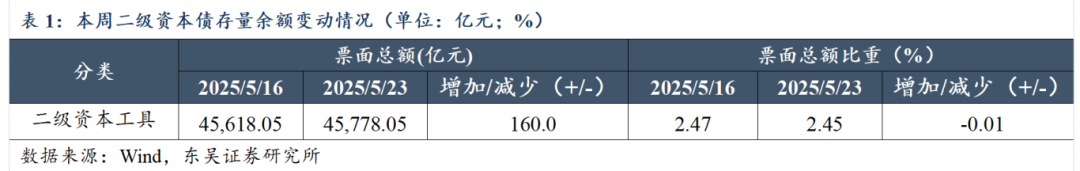 截至2025年5月23日,二级资本债存量余额达45,778.05亿元,较上周末(20250516)增加160.0亿元。