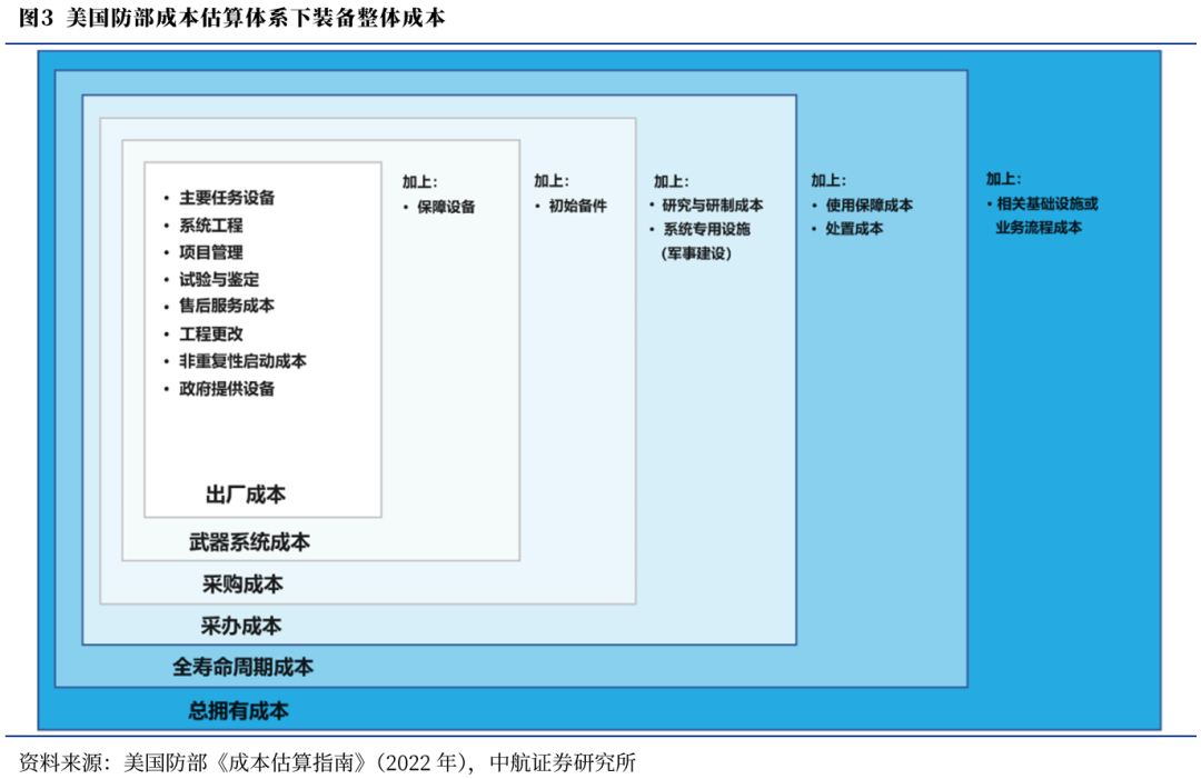 根据美国防部《成本估算指南》(2022年),军用装备通用的成本指标主要包括以下几项: