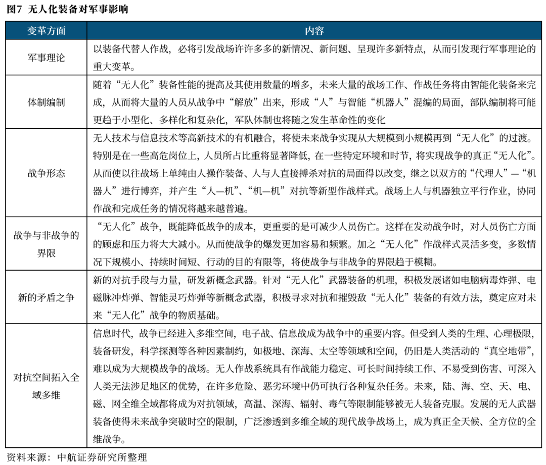 无人装备引发的无人化趋势,将对军工产业及军事攻防对抗产生深远的影响。任何军事技术革新,都可能引发军事领域内的变革。无人化装备作为高新技术的产物,其发展与运用必将对未来军事实践产生重大影响。我们认为,将存在以下影响。