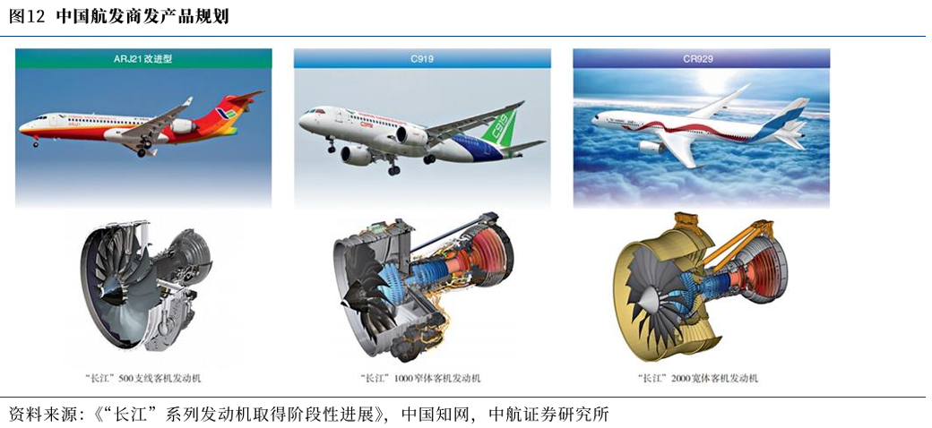 中国航发商发的国产民用发动机共规划了三个产品系列为中国商飞的飞机产品配套 :