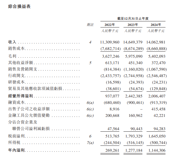 招股书显示,在过去的2022年、2023年和2024年,锦江酒店的营业收入分别为人民币113.10亿、146.49亿和140.63亿元,相应的净利润分别为2.69亿、12.77亿和11.44亿元。