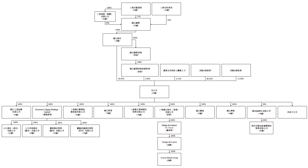 根据招股书披露,锦江酒店在香港上市前的股权架构中,