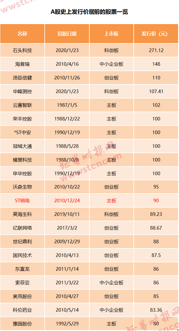 该公司首发价格为90元,这一发行价在A股历史居于前列。