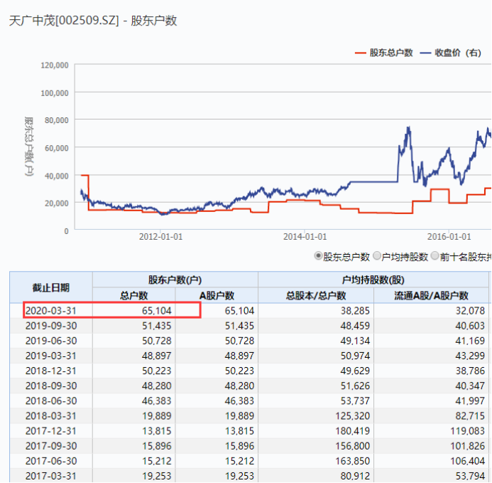 截至2020年一季度末,东沣B股东户数尚有1.68万户,天广中茂股东户数约为6.51万户,两者合计超过8万户。