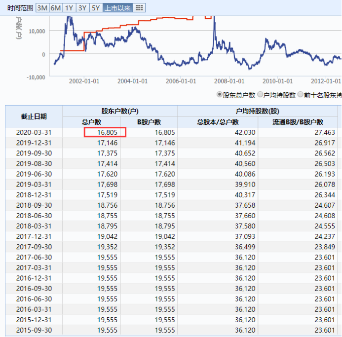作为B股上市公司,东沣B的股东户数虽然不如很多A股公司多,但也常年都在1万户以上,截至2020年一季度末,东沣B股东户数仍有1.68万户。