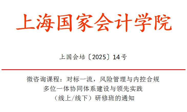 基于此,上海国家会计学院于2025年继续迭代升级“微咨询:对标一流,风险管理与内控合规多位一体协同体系建设与领先实践”研修班,以领先实践和创新研究为引领,剖析标杆企业内部控制与风险管理的先进实践,阐述风控合规“多位一体”的管理思路与架构,帮助构建风险管控机制,全面提升风险管理、内控、合规管理的实战能力和水平。