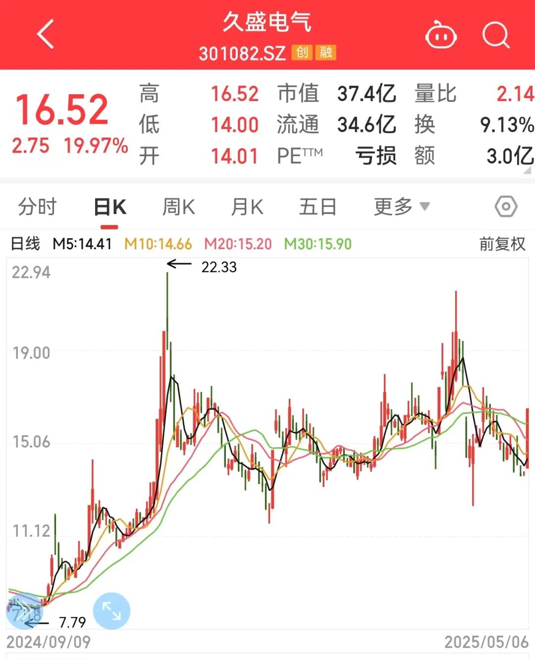 可控核聚变板块涨幅最高,概念股久盛电气(301082)今日高开,开盘不到5分钟,股价便封住“20cm”的涨停板。其他概念股如合锻智能(维权)、雪人股份、永鼎股份、海陆重工(维权)、兰石重装均涨停。