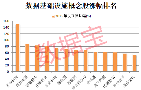 据证券时报·数据宝统计,A股市场涉及数据基础设施题材(含算力、云计算、数据要素、数据安全、5G等)的股票多达278只。截至4月30日,这些概念股合计A股市值超7.1万亿元。今年以来,共13股累计涨幅超50%,其中并行科技、科泰电源(维权)、芯原股份、拓维信息、胜宏科技涨幅靠前。