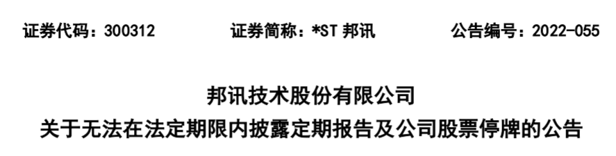 *ST邦讯公告称,上述事项可能导致公司2021年度经审计净利润为负值且营业收入低于1亿元、归属于上市公司股东的净资产为负、被审计机构出具非标准意见的审计报告,从而触及退市新规导致公司被终止上市。