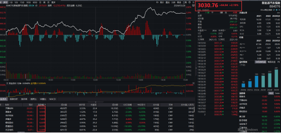 行业板块和赛道方面,新能源赛道午后崛起,领涨市场。Wind新能源汽车指数收盘上涨2.19%,天赐材料、璞泰来等多股午后急速拉升,最终封住涨停。当升科技、多氟多、恩捷股份等多股午后大涨。