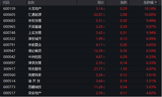 另外,地产板块股票今天在尾盘时段也有一定拉升迹象,其中的京投发展、上实发展(维权)等股票尾盘均达到涨停板。