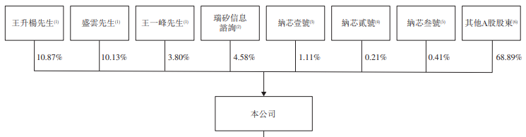 王升杨先生、盛云先生、王一峰先生、瑞硅信息咨询、纳芯壹号、纳芯贰号及纳芯叁号组成公司的单一最大股东集团,合计持股司31.25%。其他A股股东合计持股65.49%