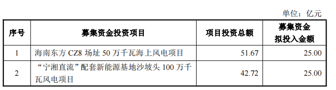 中国经济网北京10月30日讯龙源电力(001289.SZ)昨晚披露2025年度向特定对象发行A股股票预案称,公司本次向特定对象发行A股股票的募集资金总额不超过人民币50.00亿元(含本数),扣除发行费用后的募集资金净额将投资于以下项目:海南东方CZ8场址50万千瓦海上风电项、“宁湘直流”配套新能源基地沙坡头100万千瓦风电项目。