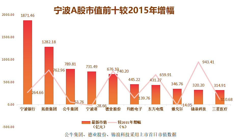 从市值增长来看,在2016年之前上市的49家上市甬企中,已有12家市值翻倍,拓普集团(增幅721.79%,后同)、韵达股份(664.72%)、东方电缆(658.10%)居前。