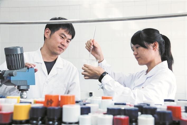 在新疆天润生物科技股份有限公司研发实验室,科研人员对初始产品进行性能测试(资料图片)。为推进科技创新,天润乳业长期同中国农业大学、新疆大学等高校开展产学研合作,建立了博士后科研工作站、新疆发酵乳微生物菌种资源开发重点实验室、中德畜牧业技术创新中心等一批创新平台。 陈建龙 摄