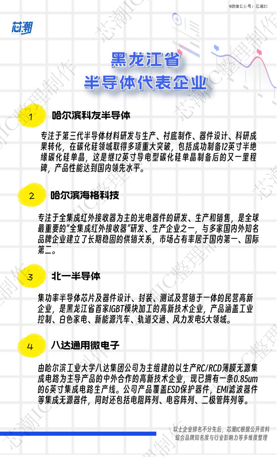 黑龙江凭借哈尔滨工业大学等高校的科研实力,在半导体材料、MEMS传感器等基础领域有着深厚积累。近年来,在第三代半导体材料研发方面取得多项突破,为产业发展奠定基础——神工股份在大直径刻蚀用硅材料领域全球领 先,科友半导体在碳化硅材料方面实现技术突破,大庆溢泰在砷化镓材料领域国内第 一。