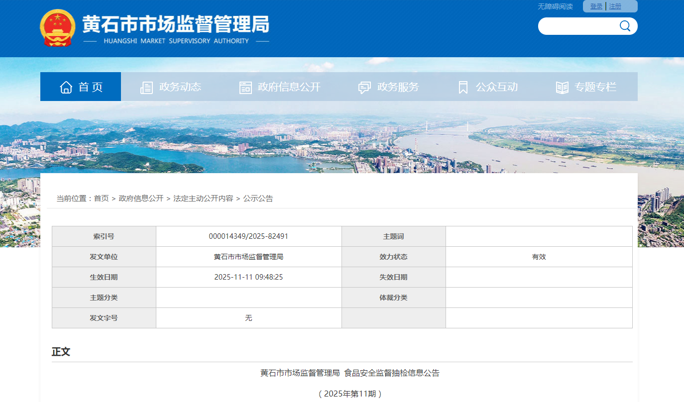 | 202 | 黄石 | DBJ25420200484931027ZX | 黄石港区国元水产商行 | 采阳园生活广场一楼南9、10号 | / | / | 黑鱼 | 称重 | / | 2025-09-20 | 合格报告 | 流通 | 农贸市场 | 食用农产品 |