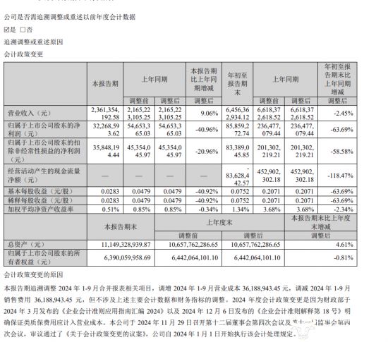 具体来看,创维数字在今年前三季度的营业收入约为64.56亿元,同比下降2.45%,变化幅度并不大;但是同期其归属于上市公司股东的净利润约为0.86亿元,同比降幅高达63.69%。