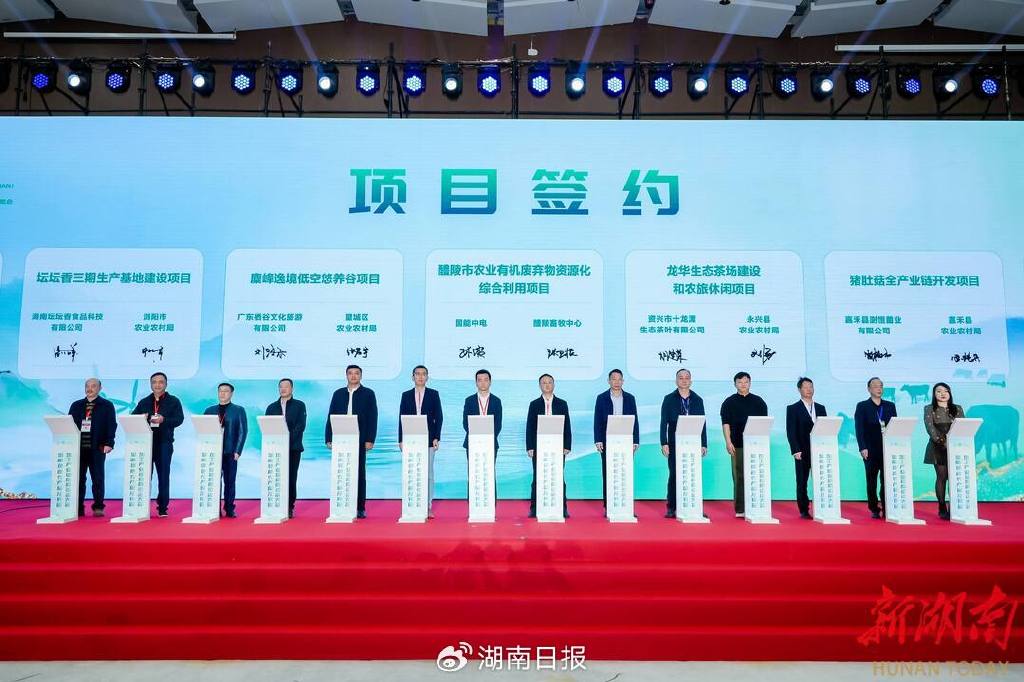 会上,张家界市、望城区、衡阳县、岳阳县、新化县、中方县等6地集中推介展示特色项目,吸引28个项目签约,涵盖杂交水稻制种、预制菜生产、有机废弃物资源化利用、茶场建设等领域。