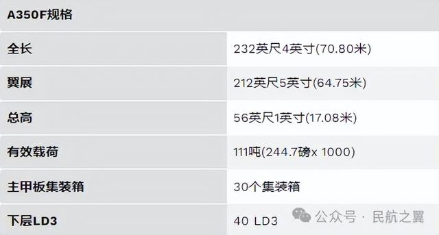 A350F有效载荷能力高达111吨,航程为8700公里,它还具有业内最大的主甲板货舱门。
