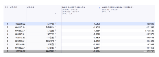 具体来看,在已披露2025年三季报的14只停牌核查股中,11股前三季度净利亏损,占比78.57%。其中,ST中迪前三季度净利亏损规模居首,公司实现归属净利润约-1.51亿元。除ST中迪外,前三季度净利亏超1亿元的则有东芯股份与ST信通2只个股。