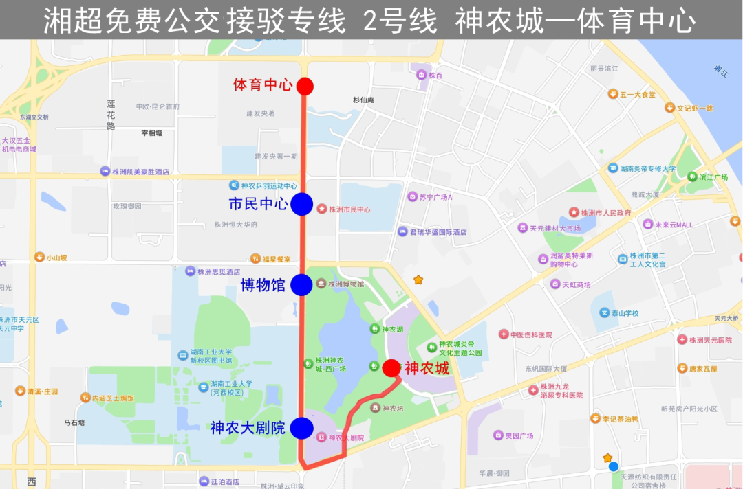 沿线停靠站点:神农城(天易集团)、神农大剧院、株洲博物馆、市民中心、体育中心