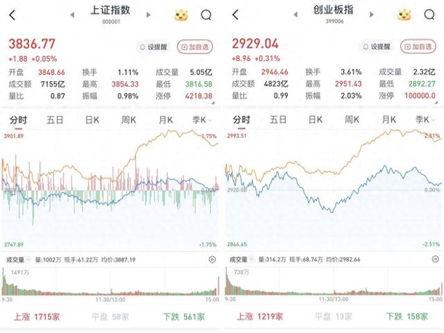 至收盘,上证综指涨0.05%,报3836.77点;科创50指数涨0.84%,报1296.6点;深证成指涨0.37%,报12585.08点;创业板指涨0.31%,报2929.04点。
