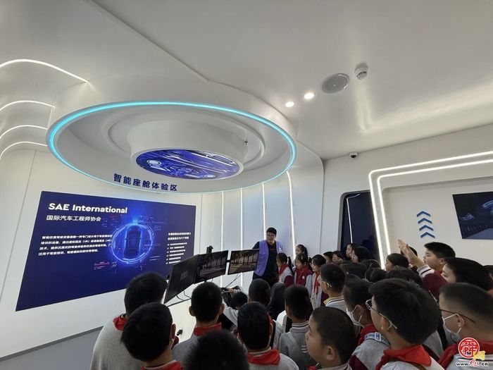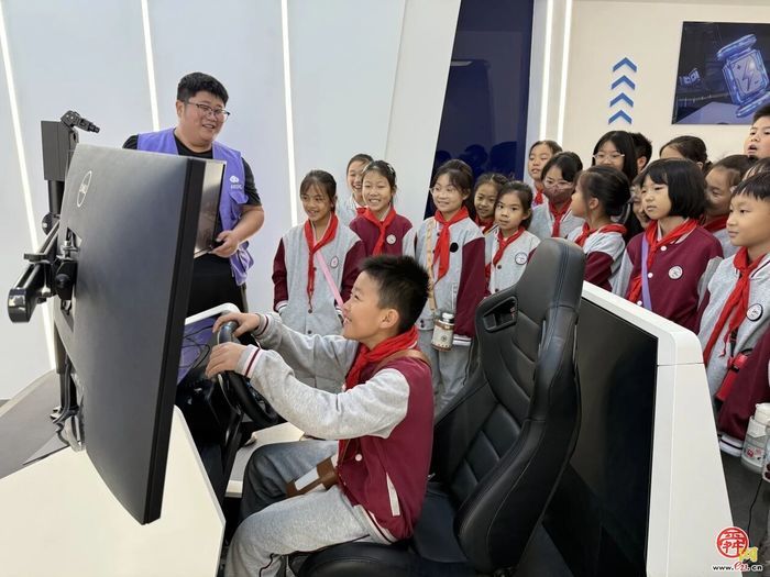 在智能座舱体验区,同学们化身“小小驾驶员”,亲手操作方向盘与智能中控屏,感受自动驾驶辅助系统带来的未来出行新体验,不时发出阵阵惊叹。