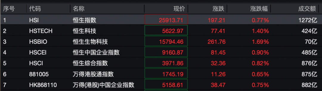 港股方面,截至发稿,恒生科技指数涨超1.4%,哔哩哔哩涨近6%,小米集团涨超4%,百度集团、快手、阿里巴巴均涨超2%。