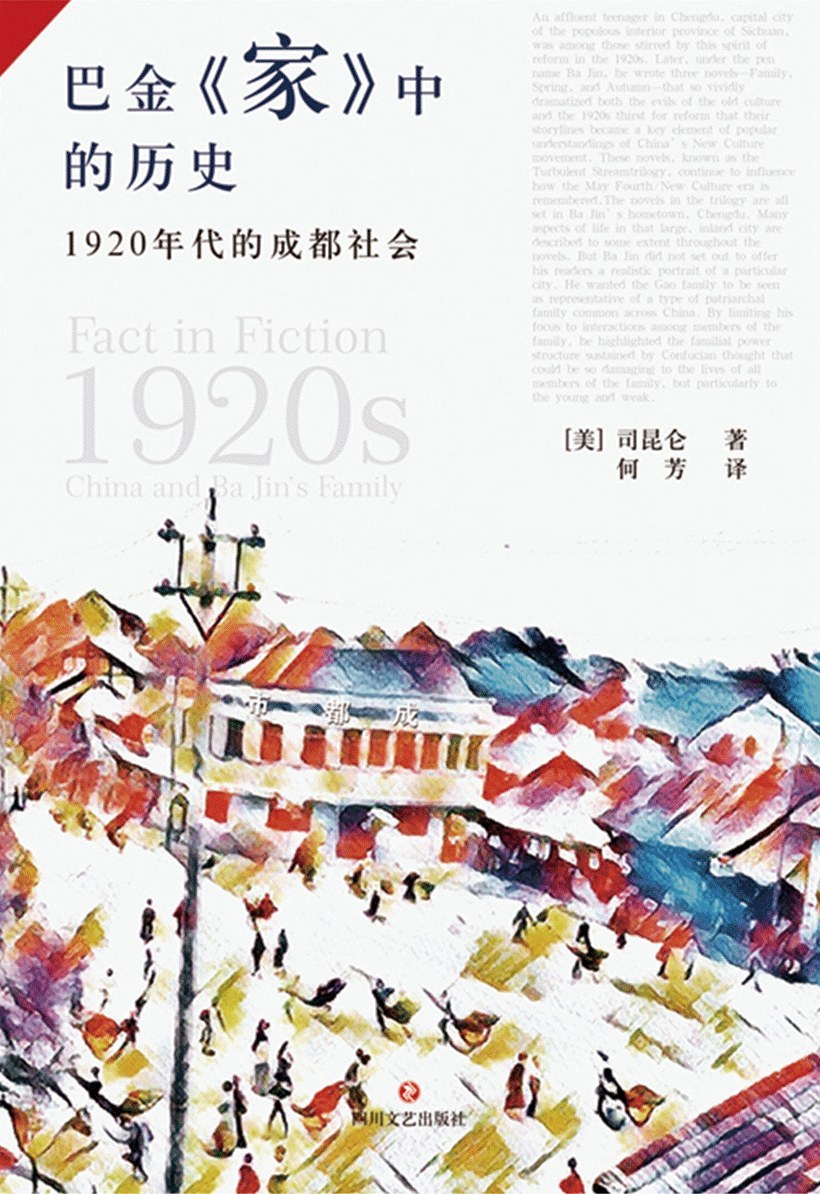 尽管在知名度上不及《茶馆》,但该书在研究方法上却别具匠心。或许是受到四川当代作家冉云飞以《吴虞日记》重构历史(冉云飞:《吴虞和他生活的民国时代》,山东人民出版社,2009年)的启发,司昆仑以巴金“激流三部曲”中最著名的一部小说《家》为引,穿梭于文学虚构与历史真实之间,试图重建小说戏剧性情节与真实城市生活之间的联系,从而还原五四时期更为本真的成都风貌。其英文书名Fact in Fiction是点睛之笔,既可直译为“小说中的事实”,也暗含“虚实交融”的深意,颇为精准地概括了全书的方法与旨趣。