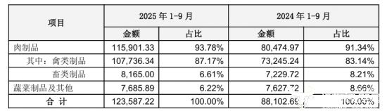 财报数据显示,有友食品前三季度实现营业收入12.45亿元,同比增长40.39%,归母净利润为1.74亿元,同比增长43.34%,增速领跑行业。其中公司核心产品禽类制品前三季度收入为10.77亿元,营收占比提升至87.17%。
