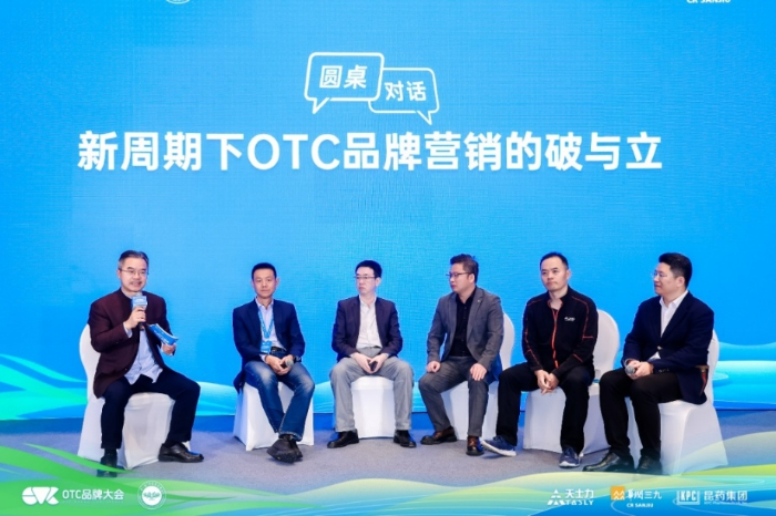圆桌对话环节由桑迪品牌咨询首席品牌官、中国非处方药物协会市场营销专委会秘书长张继明主持。他与华润江中OTC事业部负责人徐同,贝泰妮集团销售副总裁边晟晖,康臣药业副总裁兼玉林制药营销总经理黄雷声,智行合一创始人、CEO原阿里巴巴集团副总裁肖利华,分众传媒副总裁兼KA客户部总经理王龙,围绕“新周期下OTC品牌营销的破与立”这一核心议题展开深入探讨。