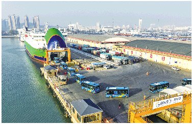 从山东港口烟台港获悉,近日,300台崭新的纯电动公交车整齐列队,在山东港口烟台港客滚码头有序登乘“绿安达”轮前往大连,标志着烟台港新能源车辆海上运输专线步入增量发展新阶段。烟台港以绿色物流为纽带,串联起烟台、大连双城经济圈协同发展脉络,为“新三样”跨区域高效流转和“双碳”目标实现贡献港口力量。