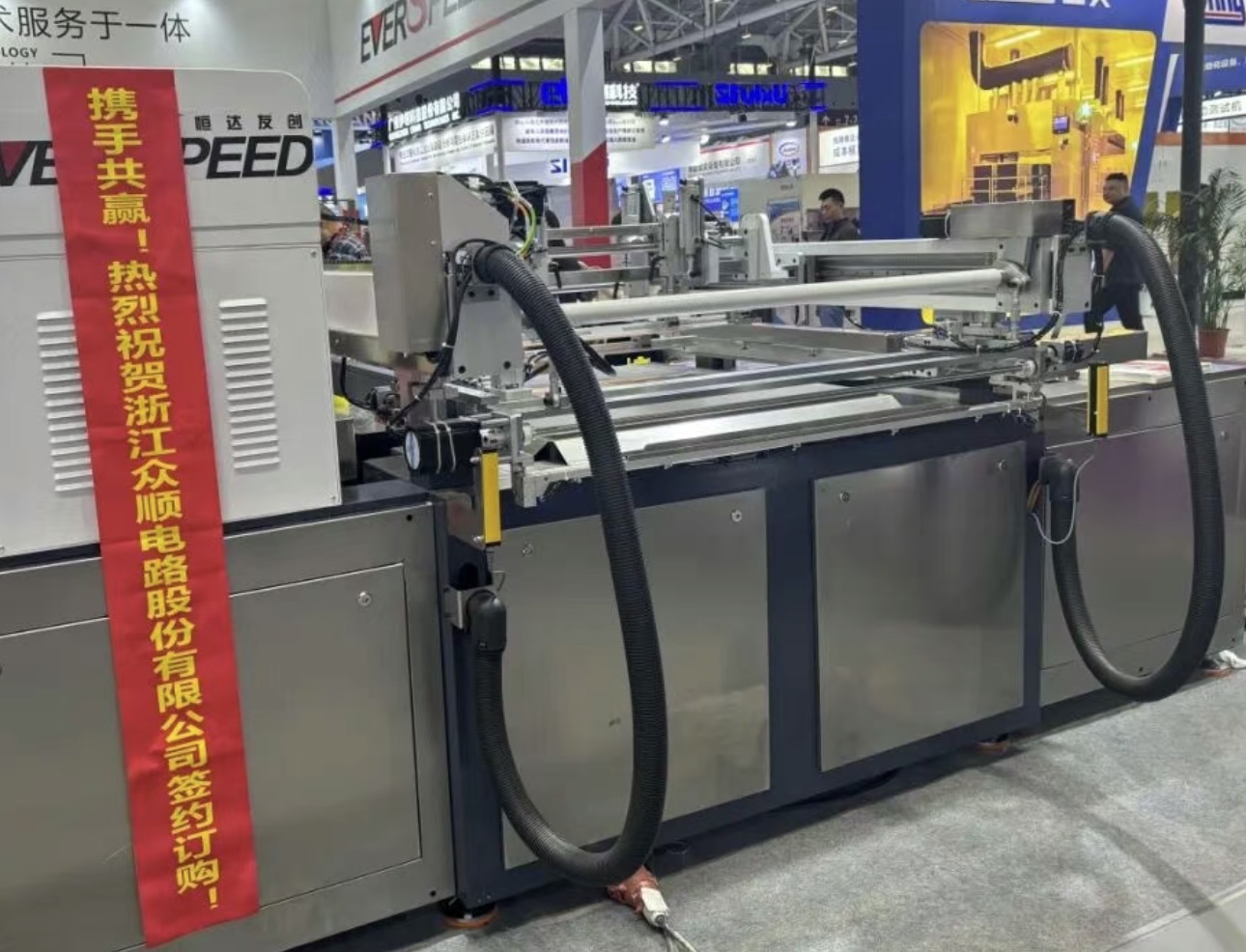 记者可以看到现场展区不断挂起订单成交的红色横幅,现场设备签单、订单洽谈的场面频频上演。根据不完全统计,现场已有东莞市政志自动化设备有限公司、昆山东威科技股份有限公司、深圳市浩创盛科技股份有限公司等数十家公司获得订单,数额在数十万元到数百万元不等。