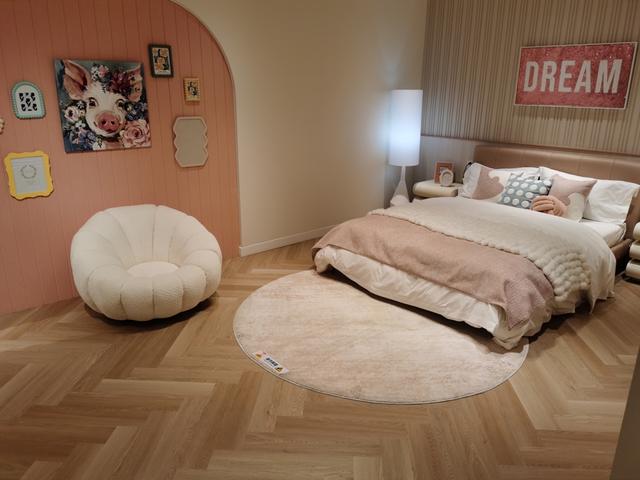 英科再生的循环产品样板房,地板和墙壁贴面还有踢脚线都使用了废弃塑料做原料,相比原生料制品,有更强的环保属性,规模化生产后,市场价格也有优势。 陈玺撼摄