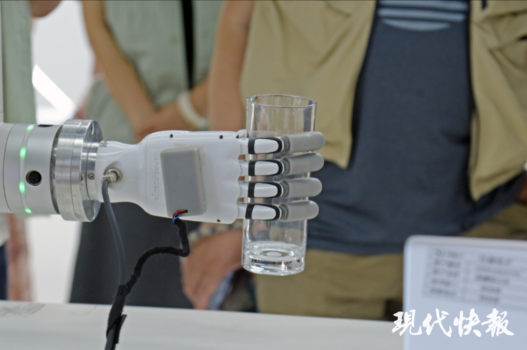 日盈电子机器人搭载电子皮肤的机械手平稳拿起玻璃杯