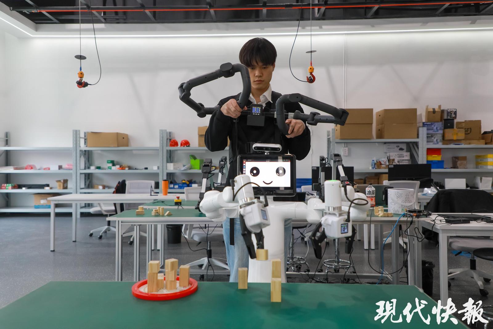 现代快报记者在现场观察到,综合创新中心内有许多年轻科研人员:他们指尖轻移,机械手如真人般精准抓取、灵活装配;他们输入代码指令,便开启了一场人机协作的实战演练……而这群年轻科研人员所在的机器人企业虽成立不久,却已在人工智能领域崭露头角。以魔法原子、鹿明机器人、乐享科技、双子智擎、蜂鸟机器人、智身科技、可以科技、华动智行为代表的“吴中八杰”,正是崛起中的具身智能“新势力”,它们共同描绘着这片创新热土的未来图景。