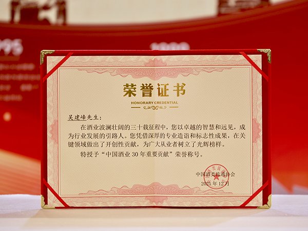 协会对吴建峰的表彰是对今世缘酒业技术根基的肯定。扎根酿酒一线37年,他不仅带领团队攻克白酒智能化酿造难题,2015年投产中国白酒首套智能装甑机器人生产线,更研发出清雅酱香型国缘V9,打破香型边界,累计为行业输送近两千名技能人才,其“全国劳动模范”的荣誉,正是对行业技术传承者的最佳褒奖。