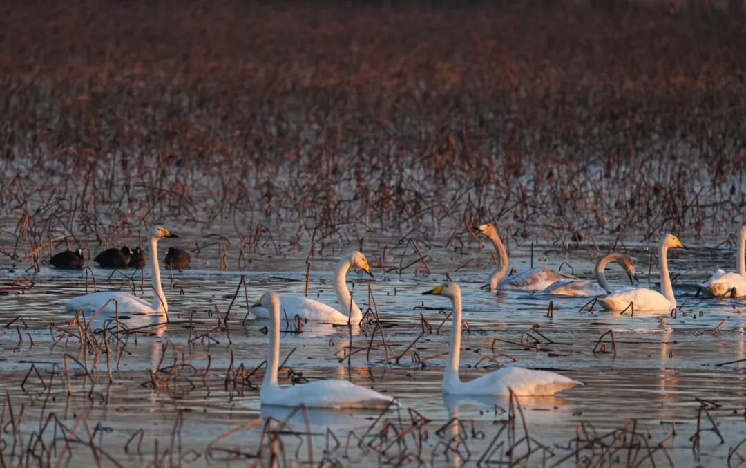 如果想见识更辽阔、更自由的“动物城”,来高青天鹅湖国际慢城吧。这里是一片广阔的湿地,超过200种鸟类在此栖息安家,是真正的“观鸟天堂”。