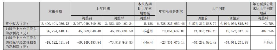 2025年前三季度,公司实现营业收入67.29亿元,同比下降2.75%;归母净利润7805.46万元,同比增长407.74%;扣非净利润亏损2333.17万元,上年同期亏损5707.13万元。
