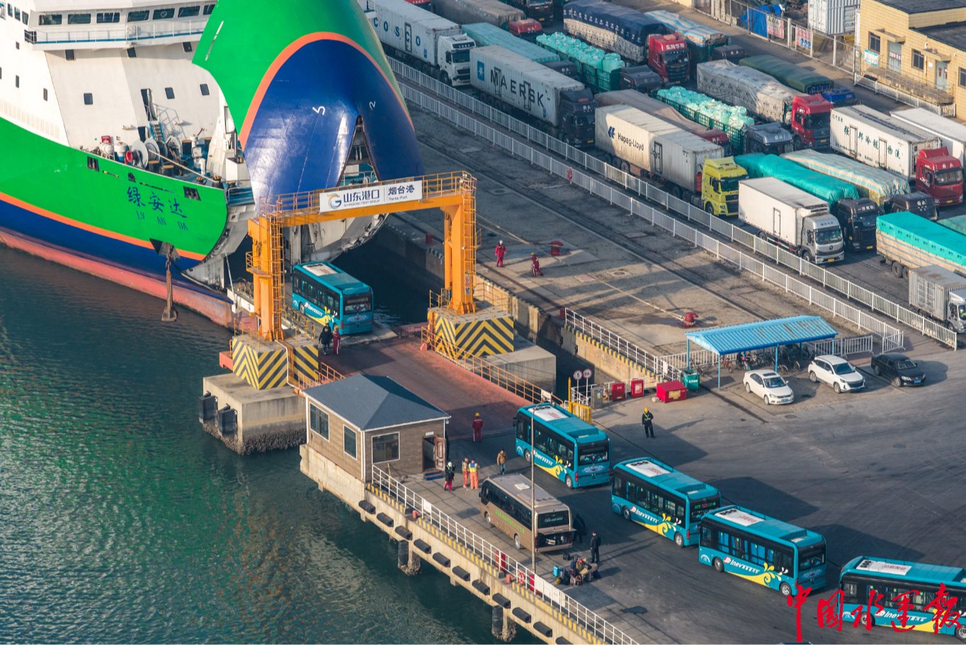 近日,在山东港口烟台港客滚码头,300台崭新的纯电动公交车有序登乘“绿安达”轮前往大连(如图),标志着烟台港新能源车辆海上运输专线步入增量发展新阶段。此次运输的新能源公交车由安徽安凯客车制造,一路北上经海上绿色专线交付大连交运集团,助力当地城乡一体化建设。