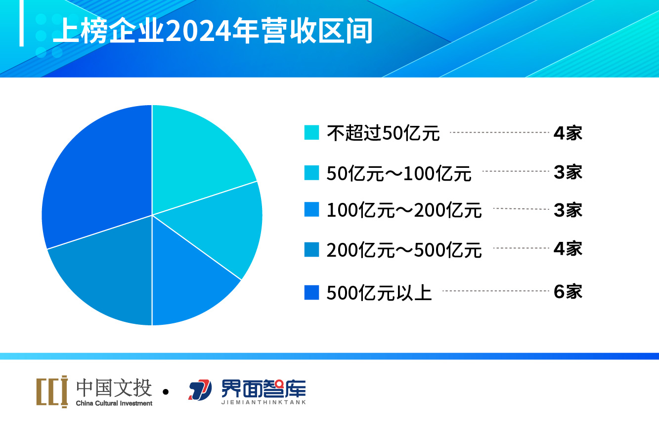 1.营业收入规模:头部生态、多元创新与战略潜力并存。上榜企业中,2024年度营业收入超过500亿元的企业有6家,腾讯、抖音等企业通过聚合流量、推荐算法、内容运营和技术底座构建了大型文化生态系统。10家企业营业收入集中在50-500亿元区间,这一规模区间的新型文化企业呈现了业态的多样性:米哈游、游科互动代表“技术美学”对全球用户的征服;科大讯飞、影石创新是以硬核工具重塑生产和消费模式。营业收入低于 50 亿元的4家企业战略潜力突出,如深度求索凭借顶级开源大模型体系进入文化与科技融合的核心赛道。