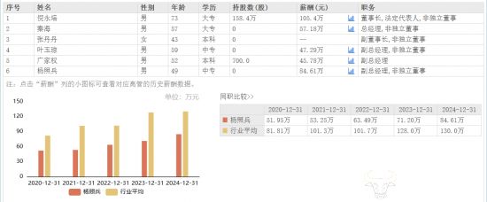 可以看出,杨照兵已在迎驾贡酒工作了多年,且主管核心销售工作。2024年杨照兵薪酬为84.61万元,相较于2023年的71.20万元,上涨了13.41万元,为三位副总经理中的最高薪酬,比总经理秦海还高,后者去年薪酬为57.18万元。