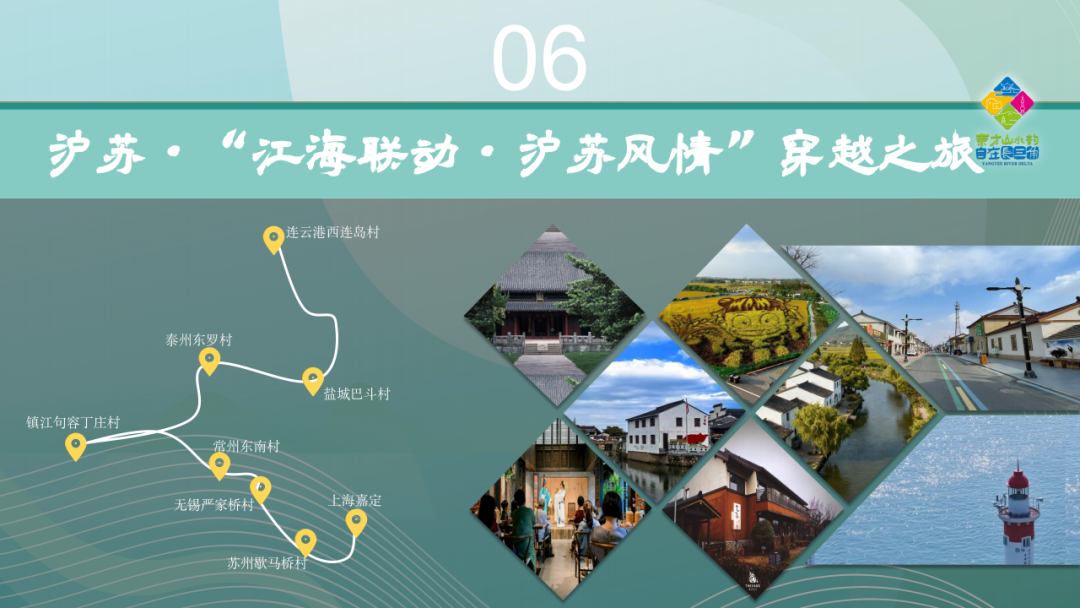 从上海嘉定的古典园林出发,穿越江苏苏州歇马桥村的“最江南”风貌,在无锡严家桥村的米码头忆往昔,于常州东南村的稻田艺术中打卡;在镇江句容丁庄村采摘葡萄,到泰州东罗村看千垛花海;再到盐城巴斗村体验黄海渔趣,最终抵达连云港西连岛村的海滨风情。