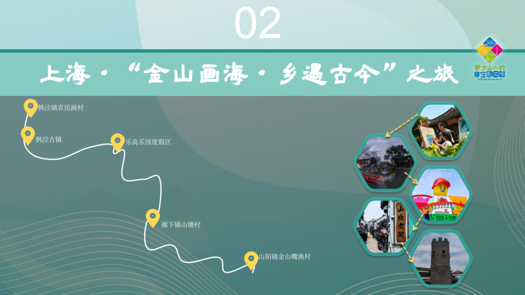 枫泾镇农民画村→枫泾古镇→乐高乐园度假区→廊下镇山塘村→ 山阳镇金山嘴渔村