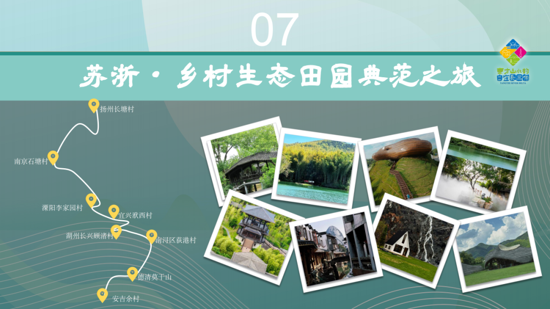 扬州长塘村→南京石塘村→溧阳李家园村→宜兴洑西村→湖州长兴顾渚村→南浔区荻港村→德清莫干山→安吉余村