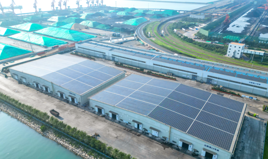 为构建多元互补的绿色能源体系,日照港立足港区实际,在石臼港区仓库屋顶、办公楼顶等适宜区域布局光伏发电设施,与风力发电机形成“风光互补”格局,全力打造“风光储一体化”能源系统。