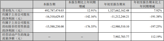 中国经济网北京12月10日讯惠云钛业(300891.SZ)日前发布2025年三季度报告。今年前三季度,公司实现营业收入13.28亿元,同比增长7.92%;归属于上市公司股东的净利润-1121.22万元,同比减少191.38%;归属于上市公司股东的扣除非经常性损益的净利润-1298.05万元,同比减少197.25%;经营活动产生的现金流量净额790.27万元。