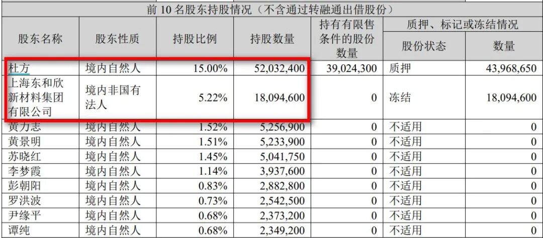 具体来看,公司现任实际控制人杜方持股5203.24万股,全部投了赞成票。第二大股东上海东和欣新材料集团有限公司(以下简称东和欣)持股1809.46万股。