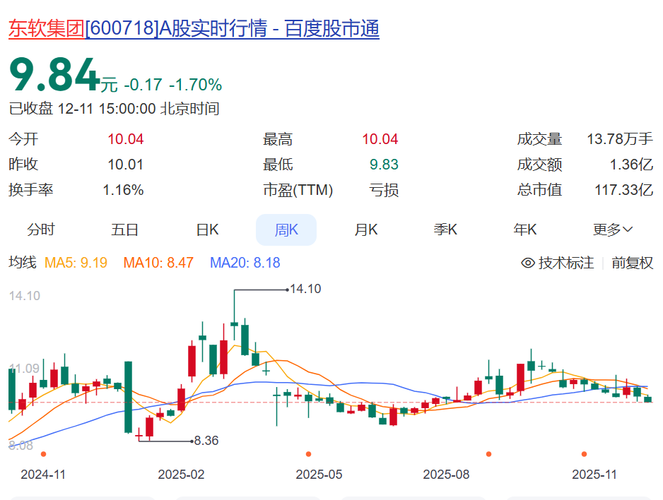 12月11日,东软集团股价跌1.7%,年内跌超7%,同期上证指数从3300点涨到超过3800点。